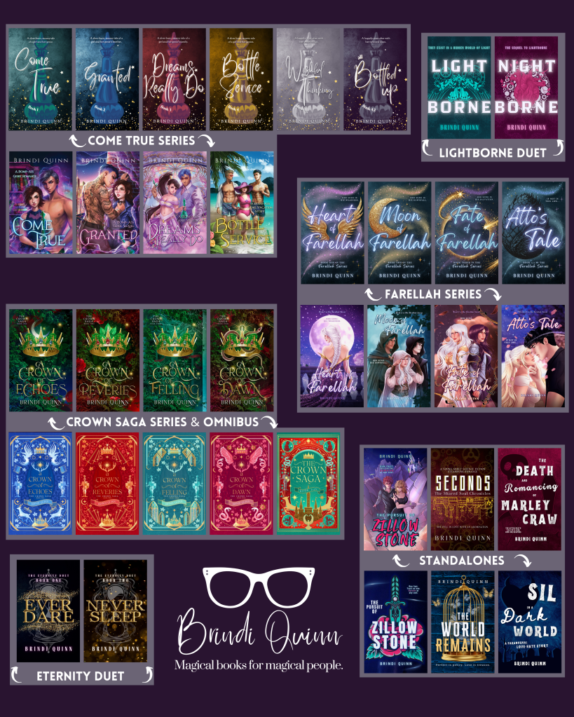 Brindi Quinn is a Minnesota-based author best known as “the genie author” behind the wildly swoony Come True series—and for weaving sparkly worlds where romance, banter, and reluctant attraction collide. Since 2011 she’s penned 20+ YA and NA novels, blurring fantasy, paranormal, sci-fi, and comedy into page-turning mashups filled with morally-gray protectors, forced proximity, and plenty of swoon.